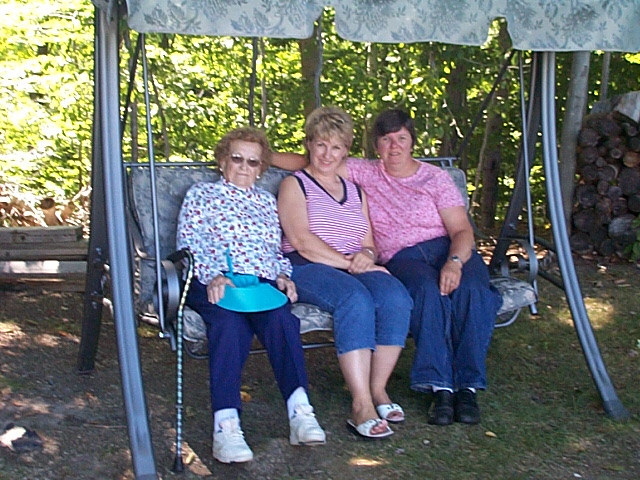 | THIS IS MY MOTHER & SISTER & ME This past summer I went to my sister's house in Attica for a family reunion on Labor Day Weekend. Jim had to work that day so he couldn't go. All my sisters kids and there kids showed up along with my mother and Sheri & I. Was a nice Sunday afternoon. |