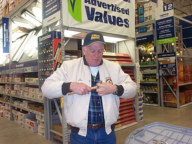 JIM IS FIXING A LOOSE HAMMER HANDLE AT LOWES |