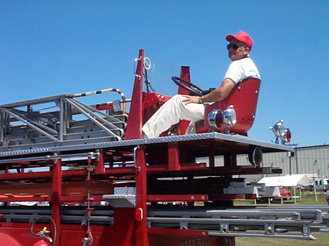 JIM SITTING ON A FIRE TRUCK IN BATAVIA |